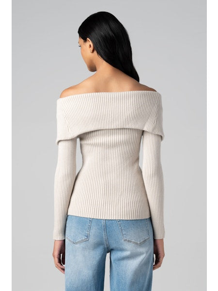 Crafted from a sophisticated mid-weight ribbed knit blend of viscose, polyester, and nylon, this piece delivers both structure and fluidity. The off-shoulder neckline creates an effortlessly elegant silhouette, while long sleeves provide versatile coverage. A functional zipper front adds refined detail and styling flexibility. The fabric composition ensures durability and a luxurious drape, making this a wardrobe essential that transitions seamlessly from day to evening.