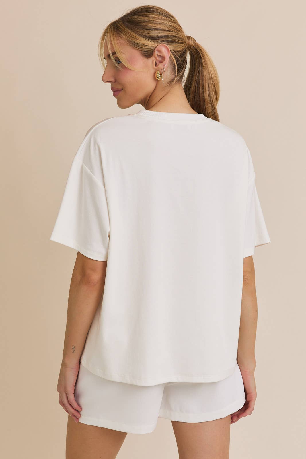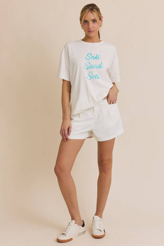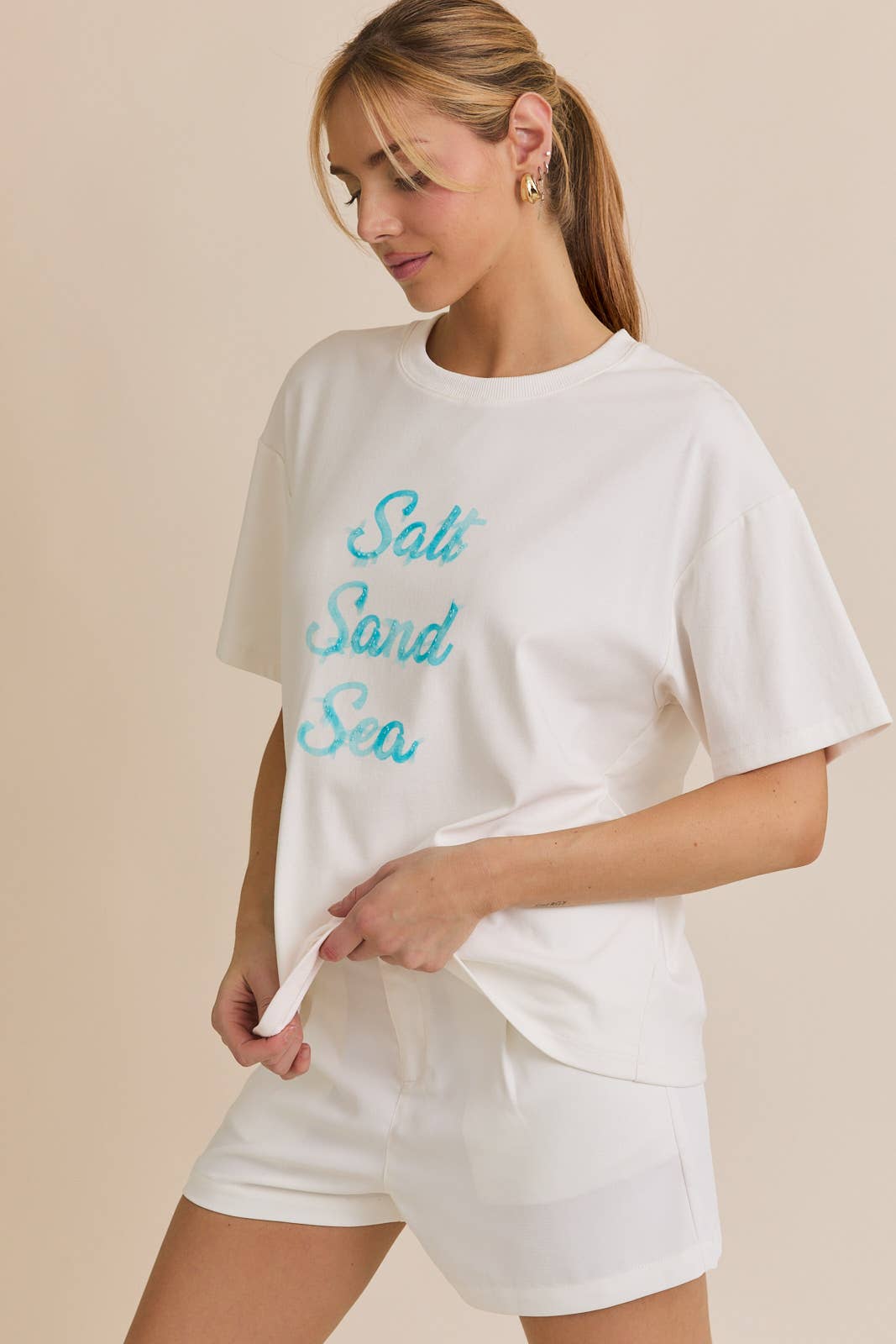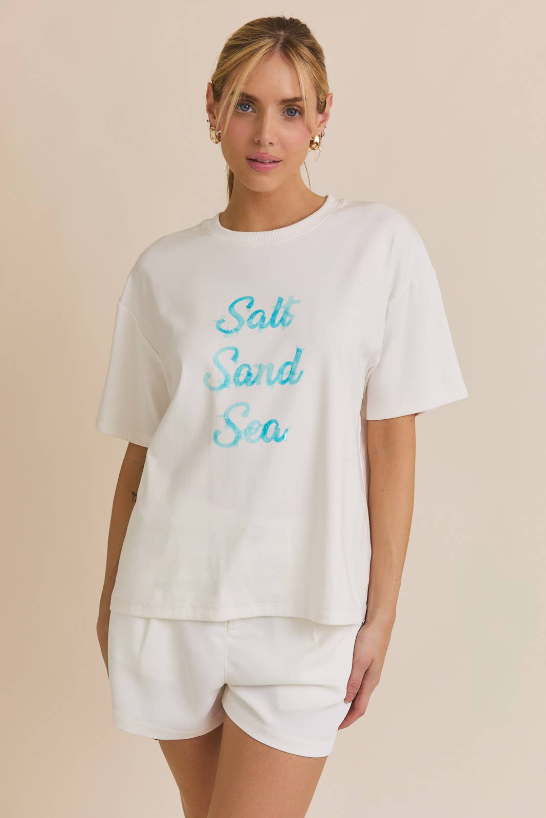 Introducing the Salt and Sea Graphic Tee, the perfect addition to your summer wardrobe. Made with premium fabric, this oversized t-shirt guarantees comfort and style. Featuring a unique graphic design, it's perfect for a day at the beach or a casual outing.