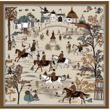 Elevate your accessory collection with this sophisticated silk scarf, showcasing an equestrian-inspired design rendered in vibrant hues. Crafted from pure silk, this versatile piece drapes beautifully around the neck and transcends gender boundaries, making it an essential addition to any wardrobe. The refined horse and township motif combines classic elegance with contemporary flair, ensuring timeless appeal season after season.