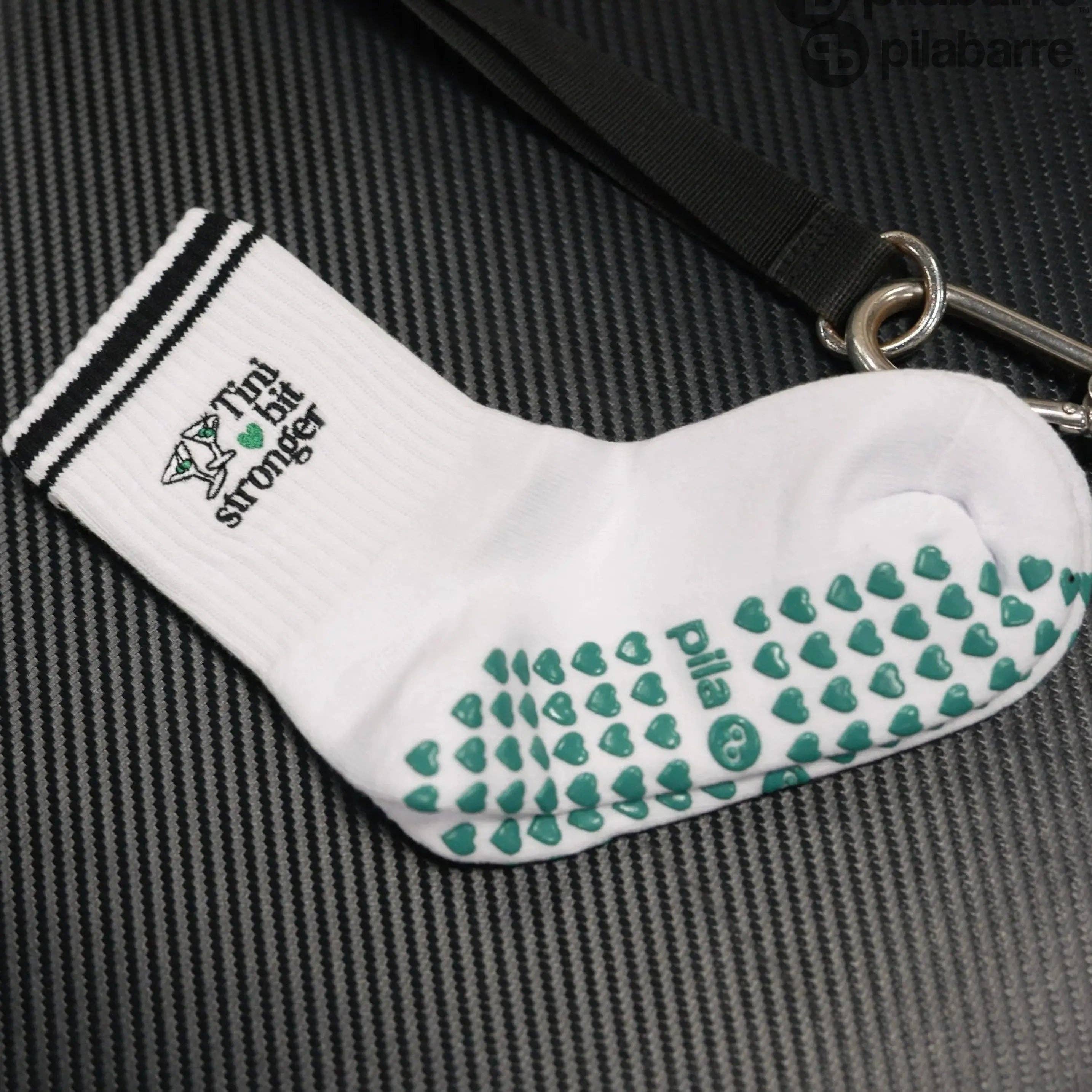 Tini Bit Stronger Grip Socks Tini Bit Stronger Grip Socks - The most perfect and cute grip sock for your workout! Pila-Barre grip socks are designed to be one-size-fits-most for sizes W5-11 and are perfect for Barre, Pilates, or Lagree!