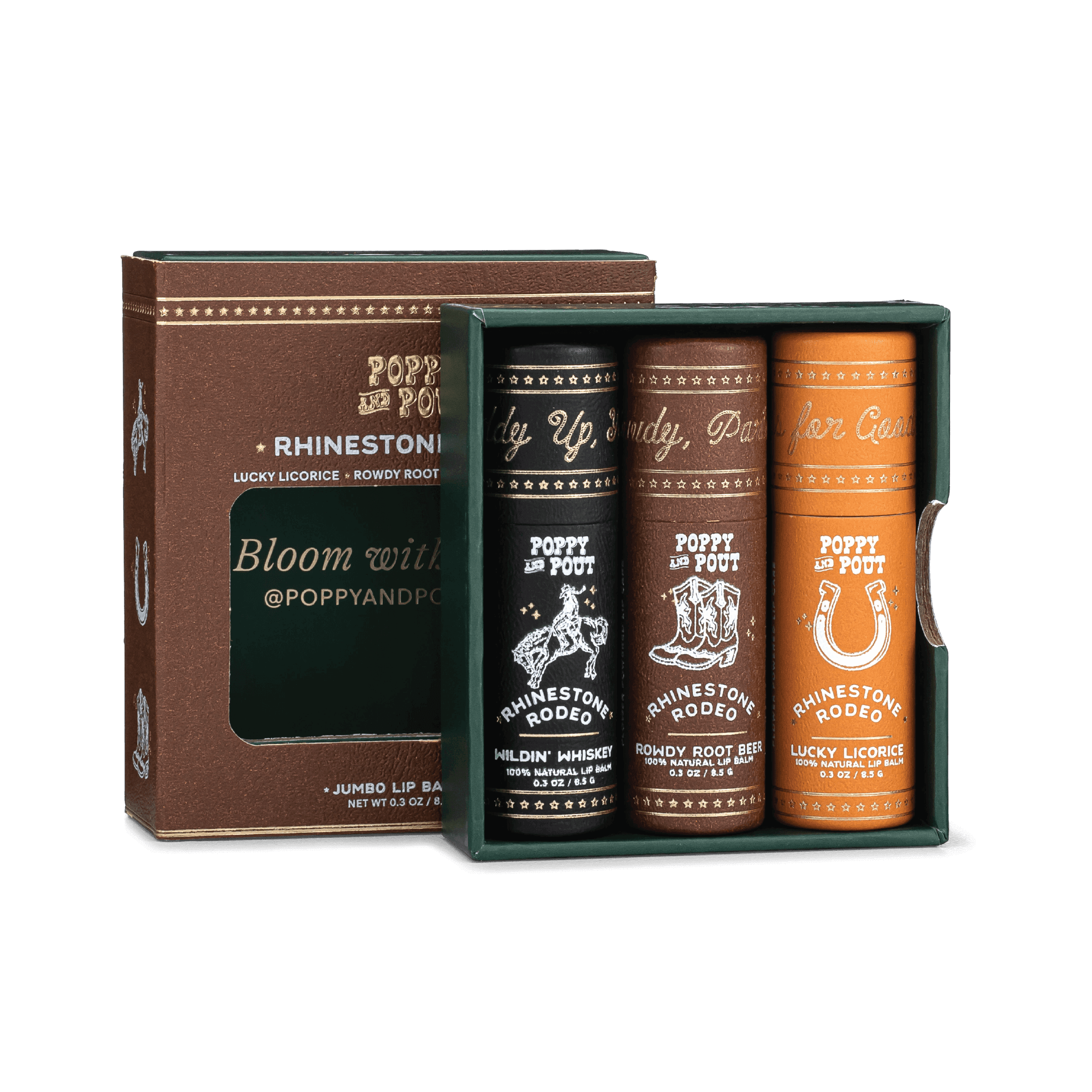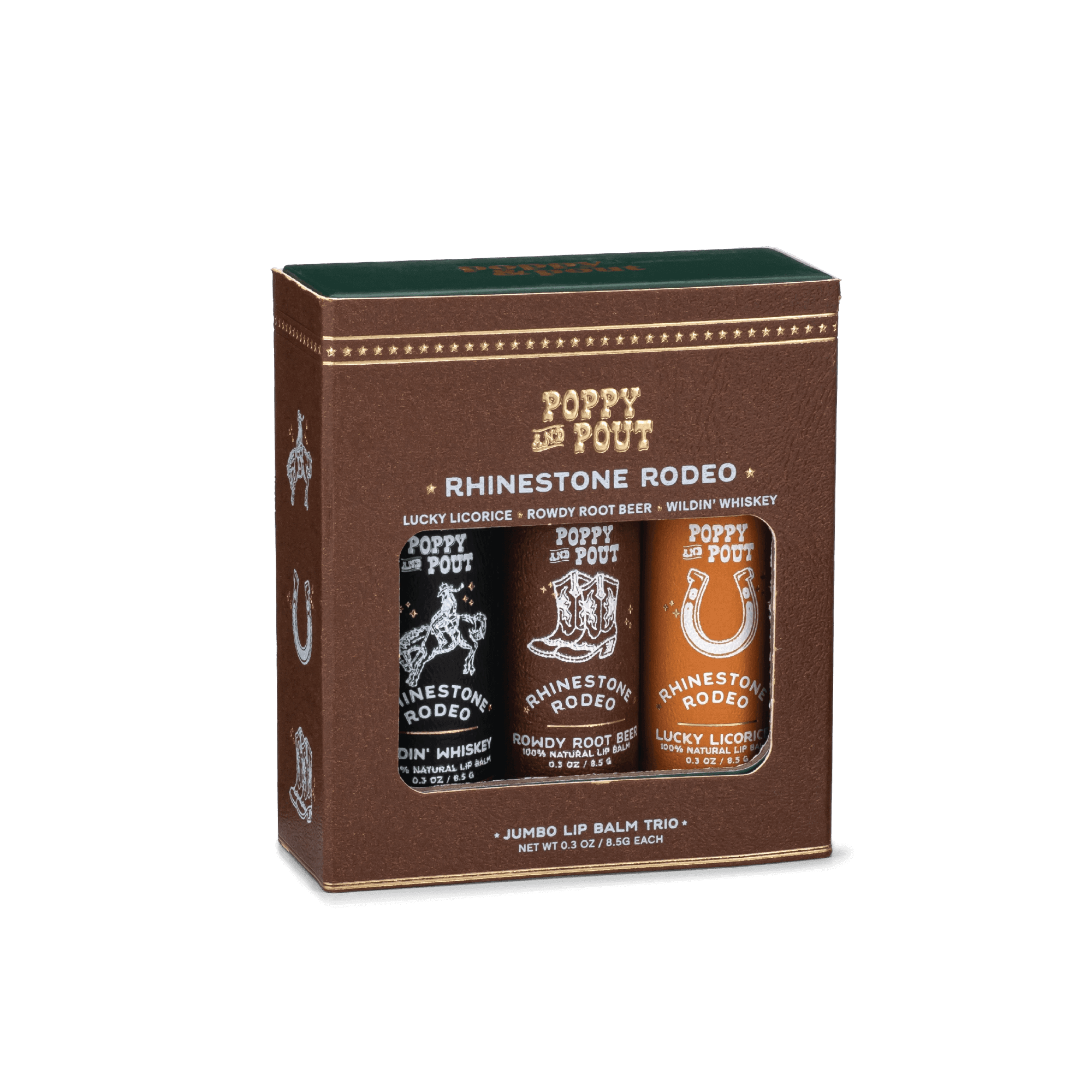 Saddle up for the smoothest lips in the West. This cowboy inspired lip balm trio features three flavors that will have you hootin' and hollerin': Wildin’ Whiskey Lip Balm: Smooth, bold, and confident, this lip balm is all about that first smooth, warm swig of whiskey with a hint of orange. Saddle up, cowboy. Lucky Licorice Lip Balm: Black as a midnight trail ride and twice as lucky, this is a sweet, spiced kick of old-fashioned candy shop charm. Whether you love it or dare to try, this one’s a real outlaw. Rowdy Root Beer Lip Balm: Fizzy, sassy, and downright delicious, this lip balm is a rootin’-tootin’ trip back to the saloon soda fountain.