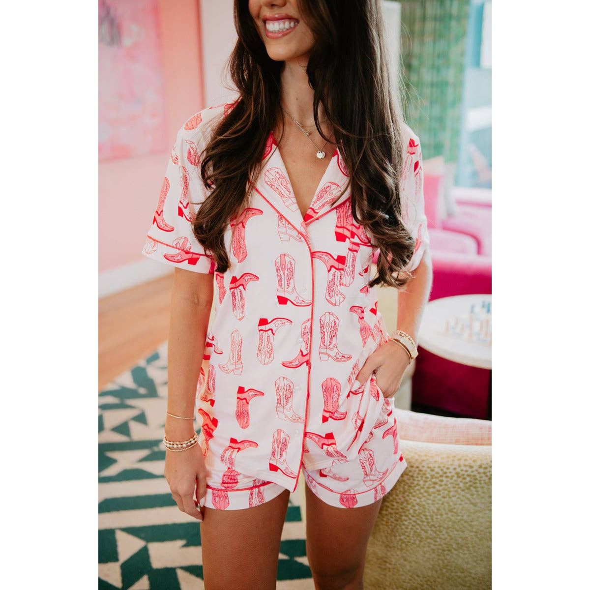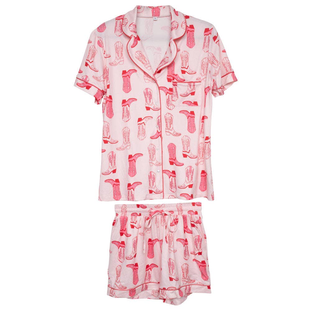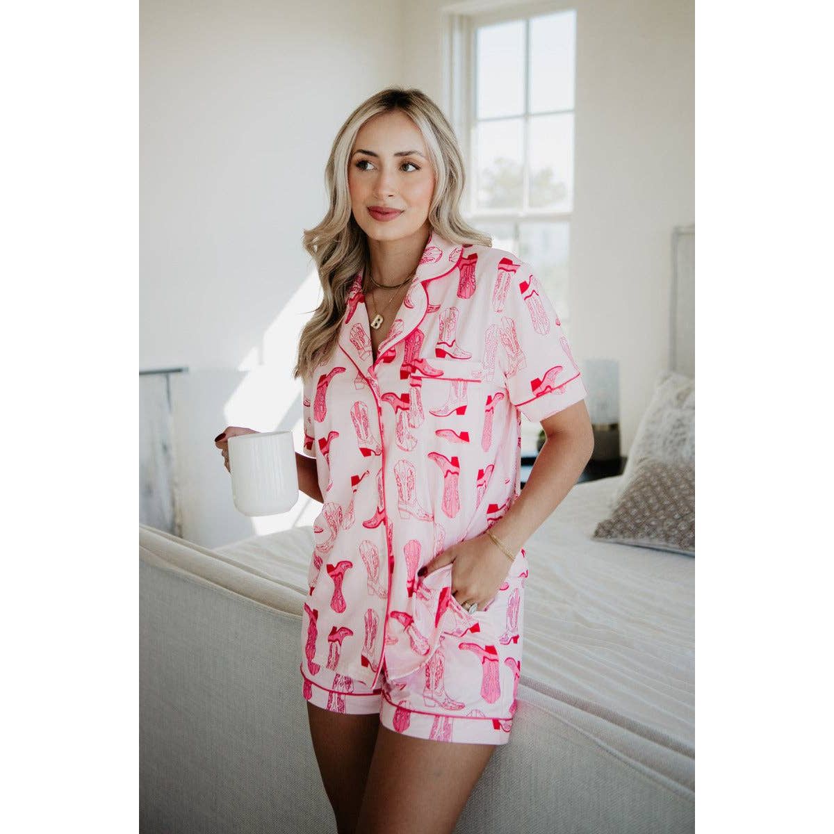 Yeehaw, girl! These Light Pink Western Boots PJs are the ultimate sleepwear for bachelorette weekends or just bringing a little rodeo charm to downtime. The all-over pink boot print is cute as can be, and the shorts are rocking a comfy elastic waistband, adjustable drawstring, and pockets. These PJs bring all the Western vibes without leaving the couch, ideal for nights in with the gals or mornings sipping mimosas.