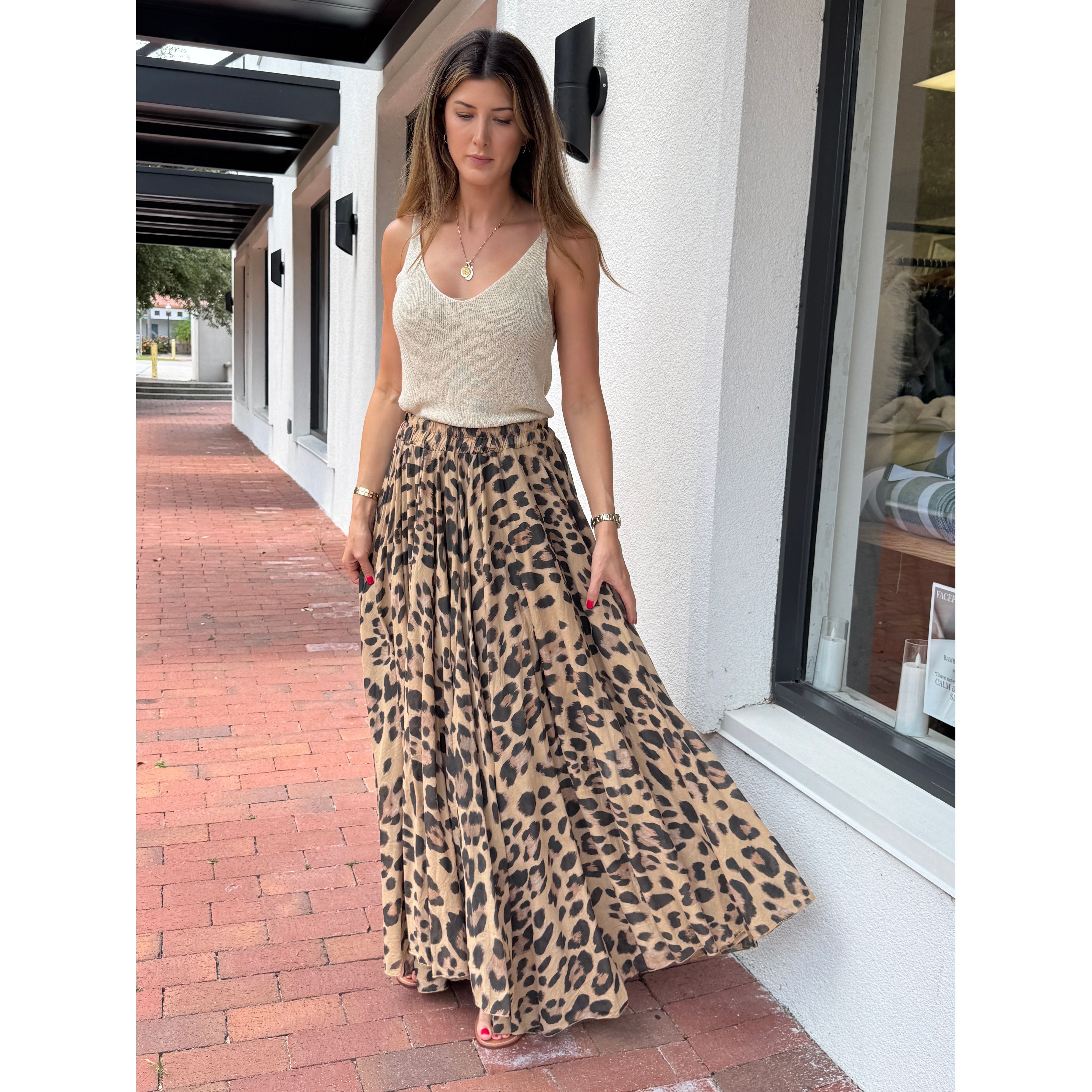 Hand crafted in Italy from 100% cotton, the Leoparda Full Skirt features a luxurious leopard print and a full maxi silhouette designed to flow gracefully with every step. Its carefully tailored cut enhances movement, while the lining ensures comfort and no opacity. This skirt combines quality craftsmanship and style, making it a standout piece for effortless, sophisticated dressing.