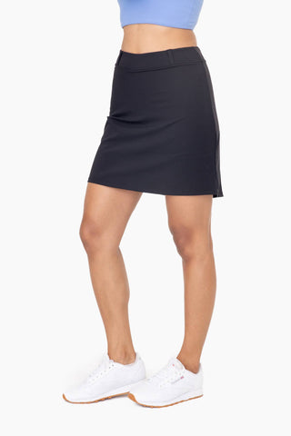 Whether you're a seasoned pickleball pro or just starting out, our A-line skirt with built-in undershort is designed to elevate your game while keeping you comfortable and looking great on the court. It features 4-way stretch recycled nylon yarns that have anti-UV & anti-microbial properties, belt loop detail at the waist, and is slightly longer in the back for additional coverage.