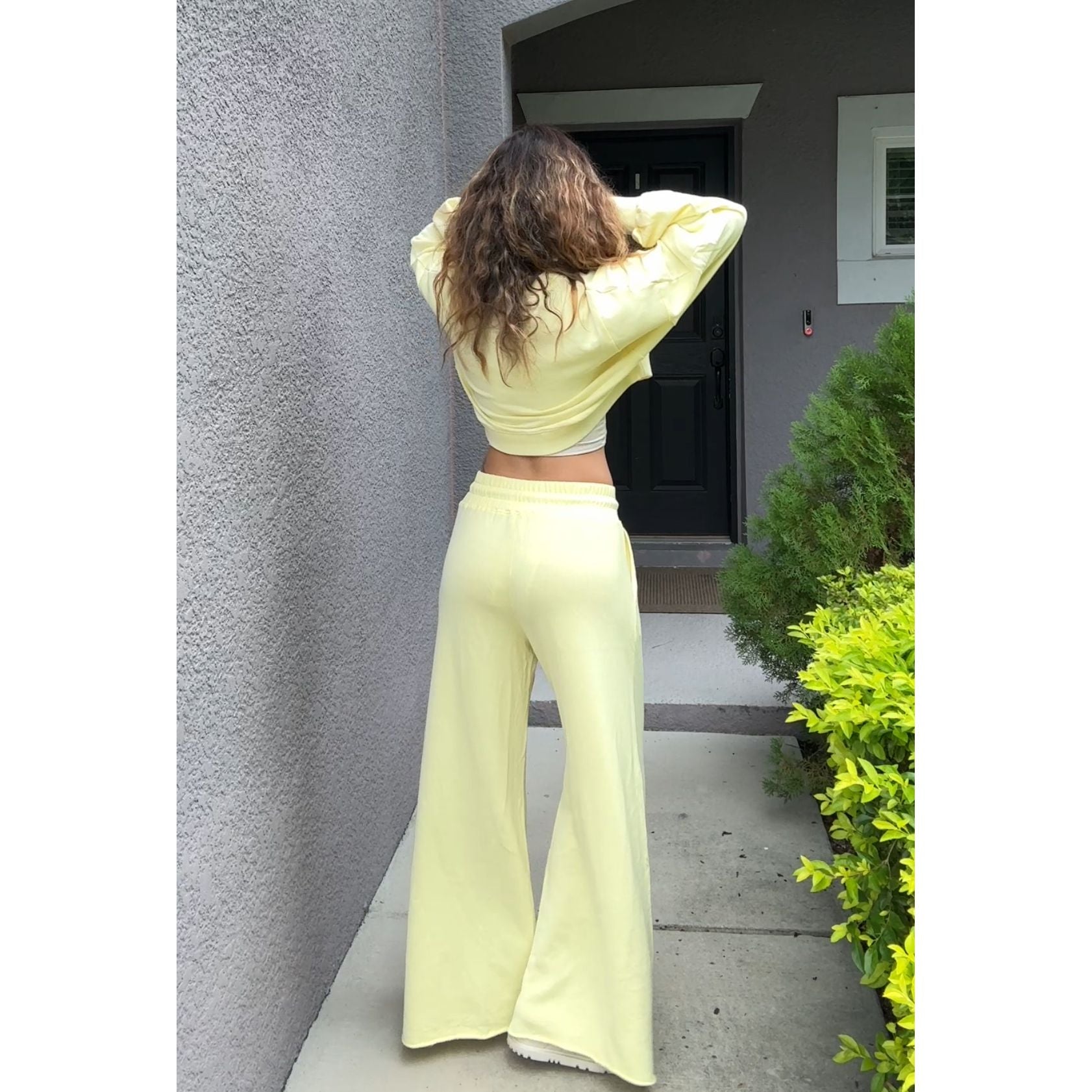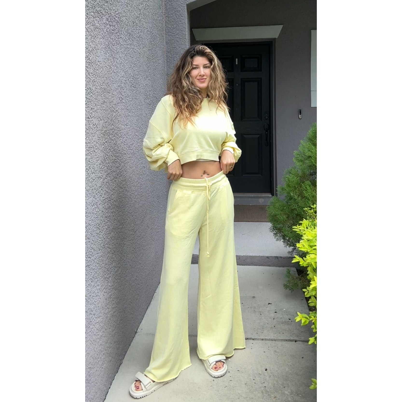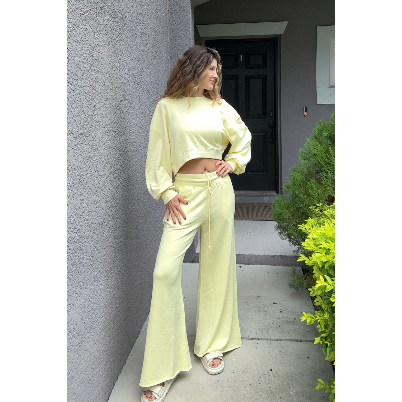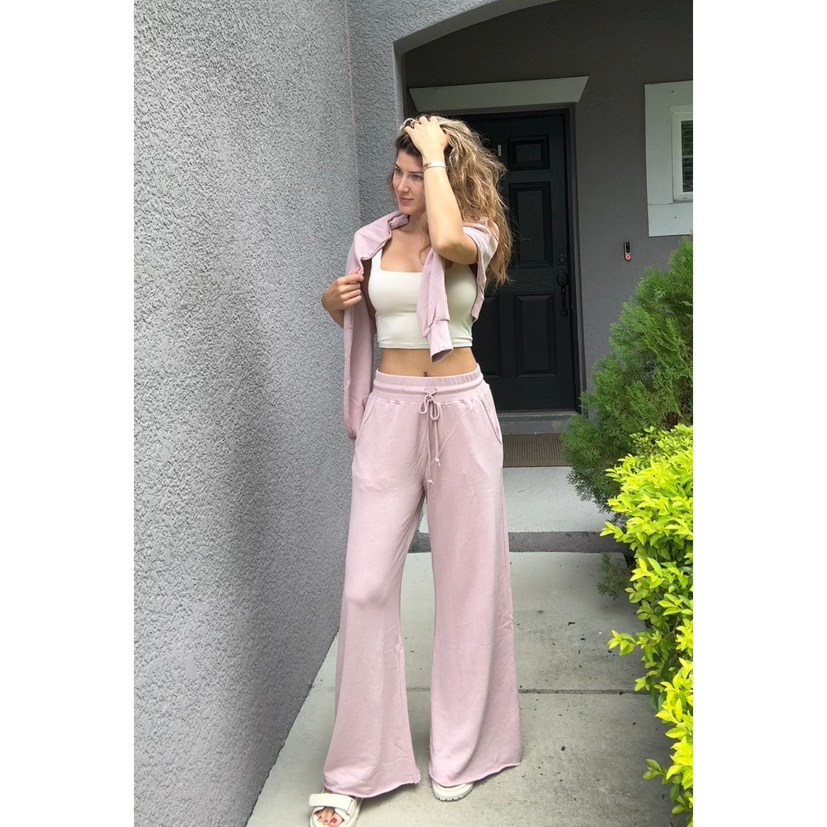 The Harbor Lounge Set from LaBiz combines comfort and style with a mineral wash cropped sweater top and matching wide-leg pants featuring an elastic waistband. Crafted from a cozy blend of 60% cotton and 40% polyester, this best-selling set offers breathable softness and easy wearability, perfect for relaxed days at home or casual outings.