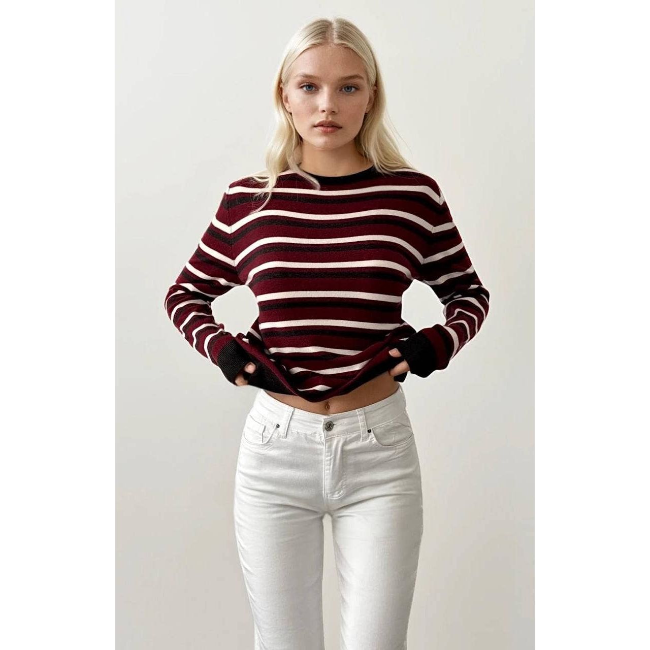 Elevate your layering game with this versatile striped crewneck sweater, expertly crafted from a premium viscose and nylon blend that delivers exceptional stretch and comfort. The lightweight construction makes it ideal for transitional seasons, while the classic stripe pattern offers timeless appeal. Engineered with one-size-fits-all versatility spanning XXS to M, this Turkish-made piece adapts to your frame effortlessly. This pack of four allows you to build a coordinated capsule wardrobe, ensuring you always have a polished option on hand. Perfect for mixing with basics or layering under jackets for refined, everyday sophistication.