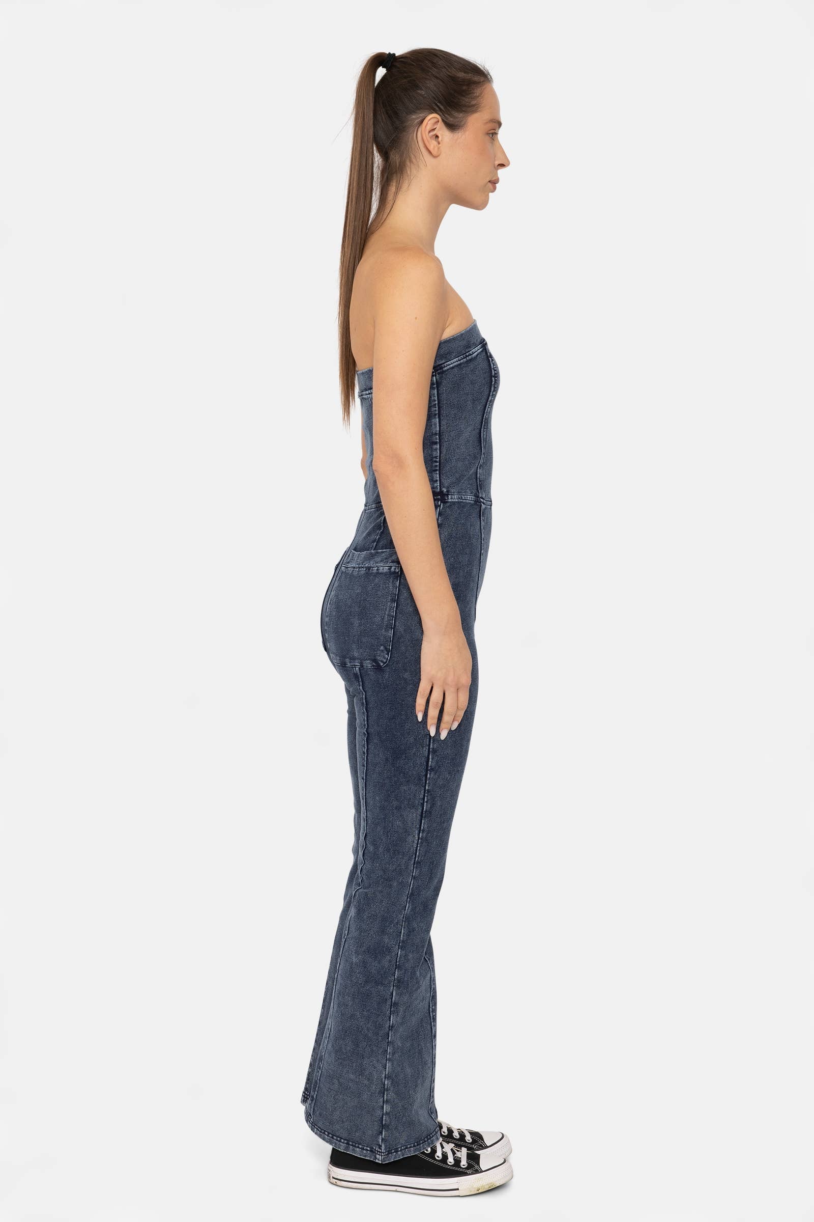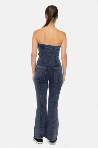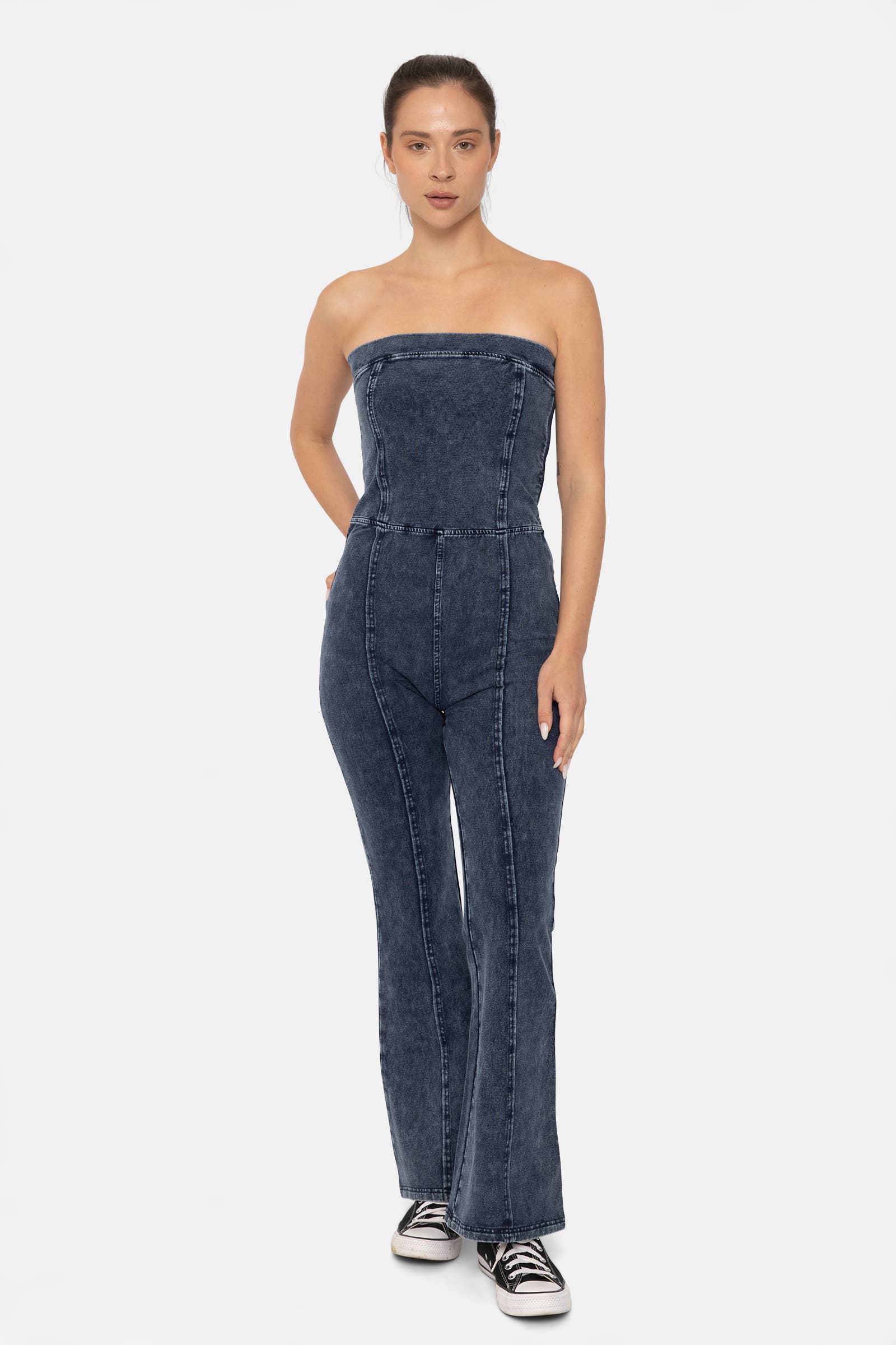 Whether you’re dancing at a concert or enjoying a day out, this straplesss jumpsuit is a standout piece for any occasion! Crafted from a soft, stretchy fabric, this jumpsuit allows you to move freely while the side zipper closure makes it easy to slip in and out of. It features elegant princess seams that run the length of the garment, creating a flattering, slimming silhouette for every body type and back pockets for any small essentials. The raw edge hem on the princess seams gives it a chic, vintage western vibe, so you can make a stylish statement.